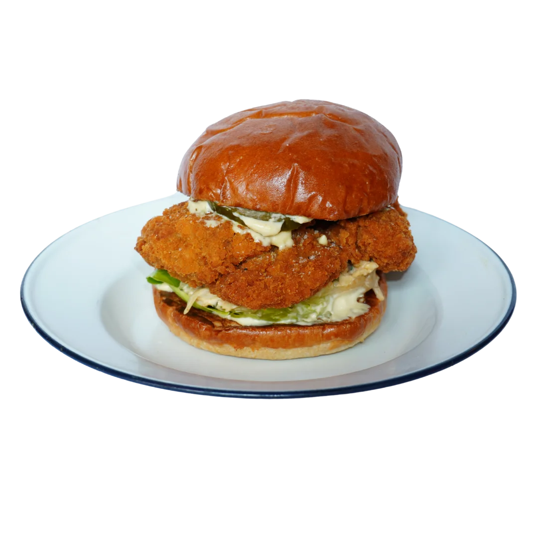 Buttermilk Chicken, Coleslaw, Pickled Cucumbers, Lettuce, Smoked Garlic Aioli