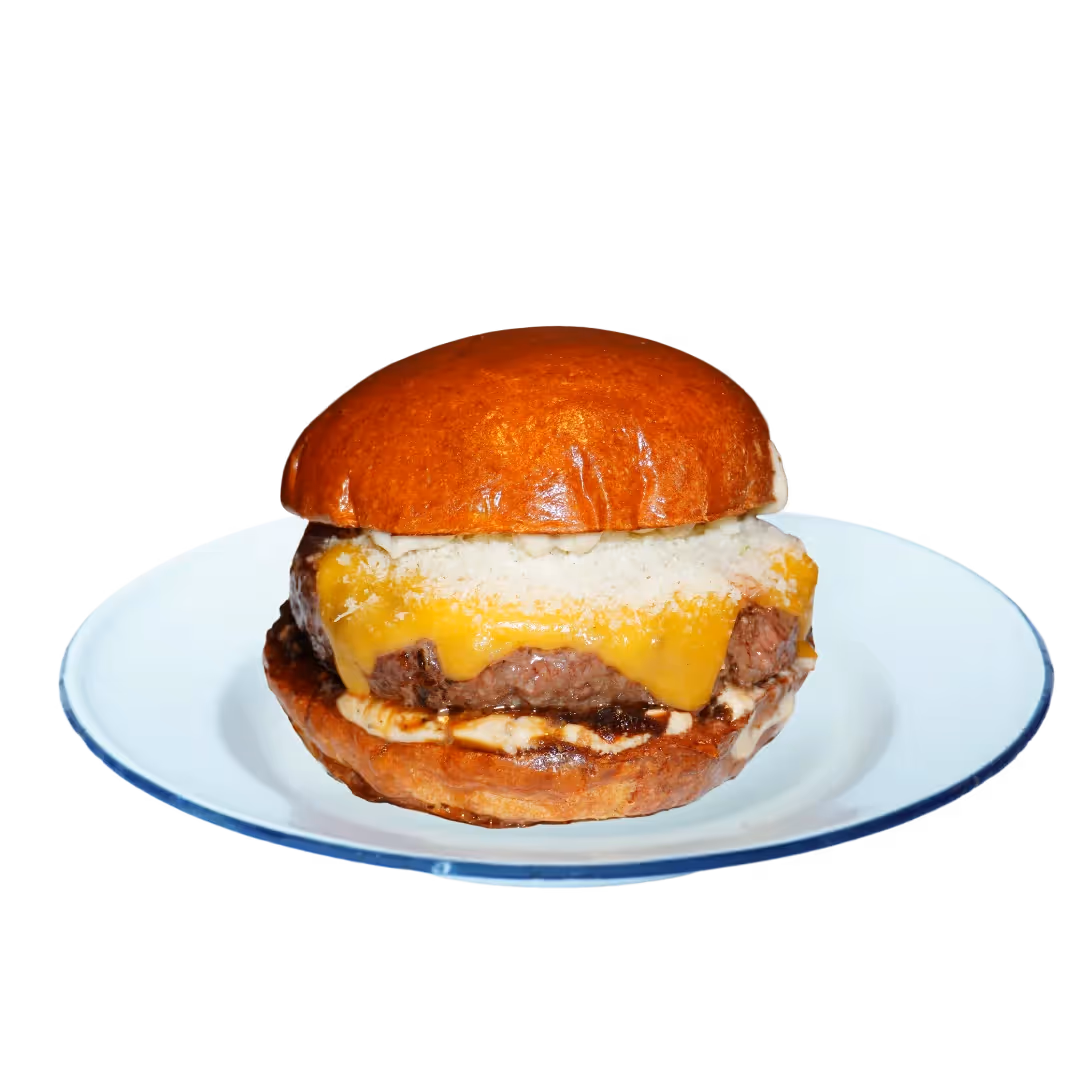 Beef Patty, Black Truffle Mayo, Onion Jam, Parmesan, Double American Cheese